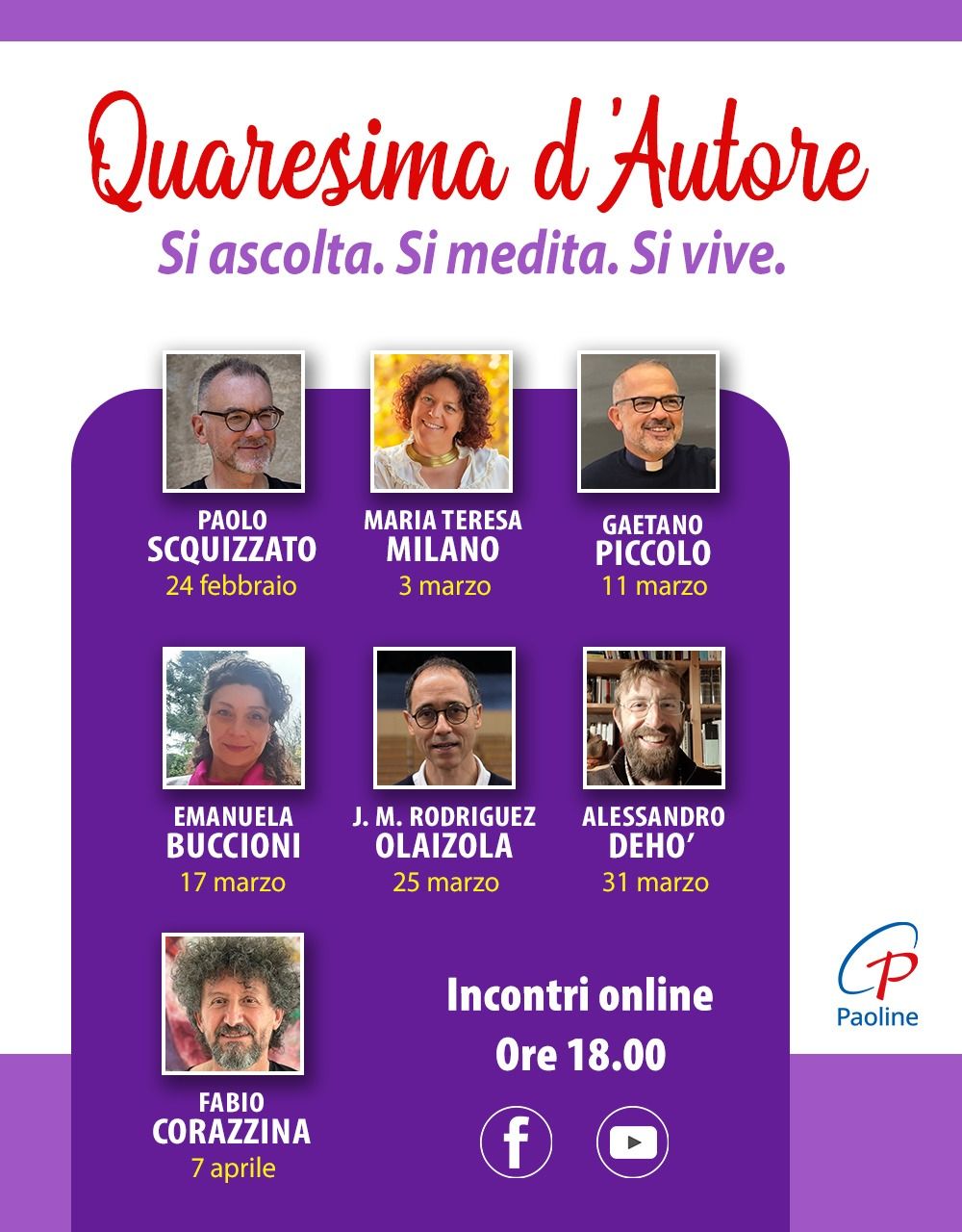 "Quaresima d’Autore”: sette incontri online dal 24 febbraio al 7 aprile 2026 con autori come Paolo Scquizzato, Gaetano…